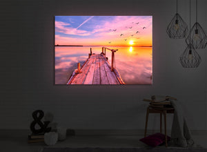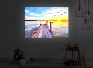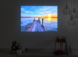 Ein Motiv, dass beim Anblick ein Gefühl von Ausgeglichenheit, Glück und Ruhe erzeugt. Durch die integrierte Beleuchtung wir der Blick in die Ferne über das ruhige Wasser noch realistischer.